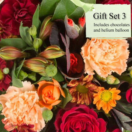 Unsure what to flowers send? Simply select a colour theme and price and we will prepare a stylish arrangement of flowers to suit the occasion in a glass vase complimented with a box of milk chocolates and helium foil balloon.