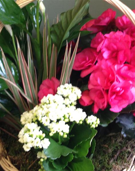 Traditional planted arrangement with a seasonal selection of indoor house plants.